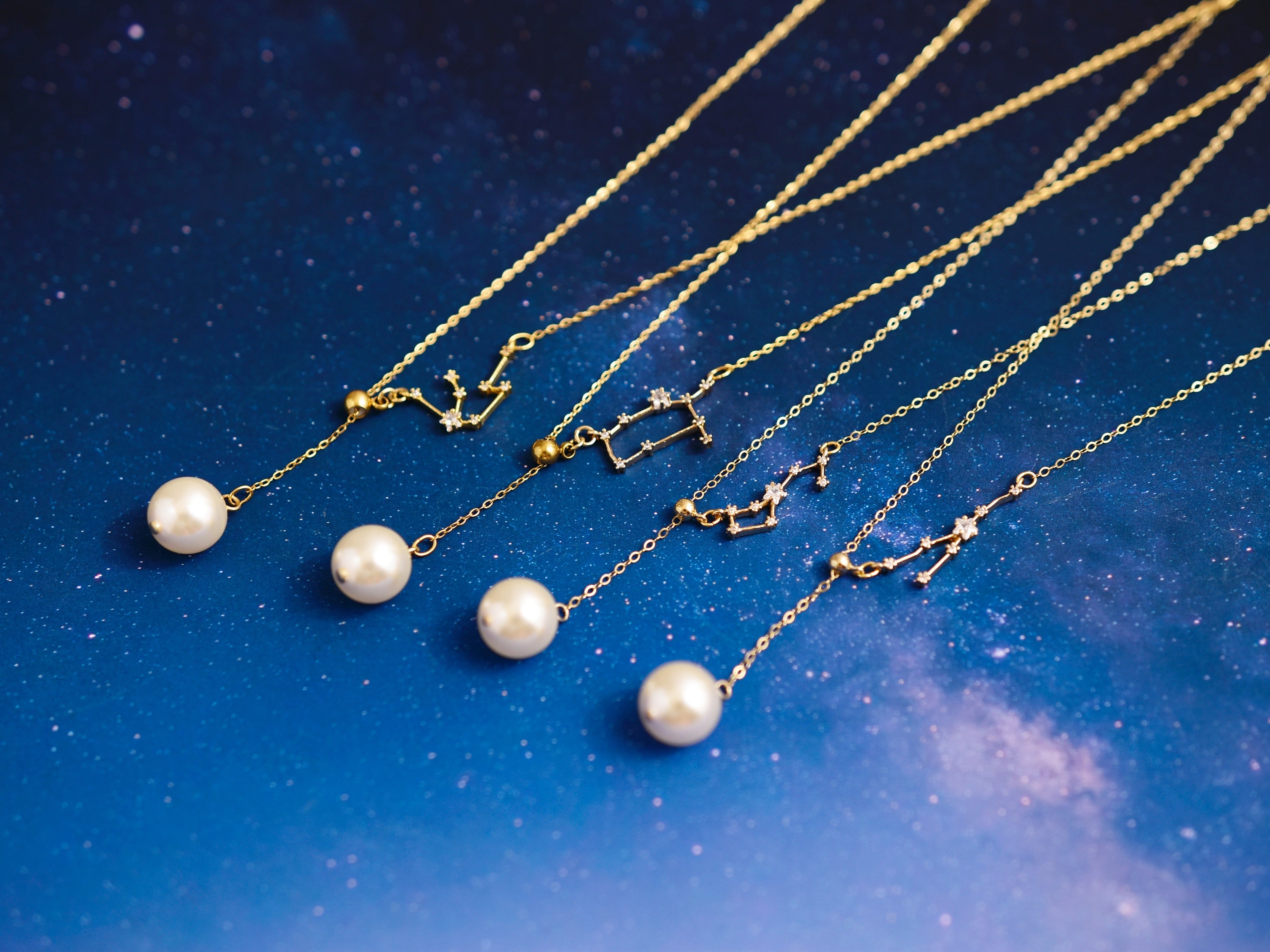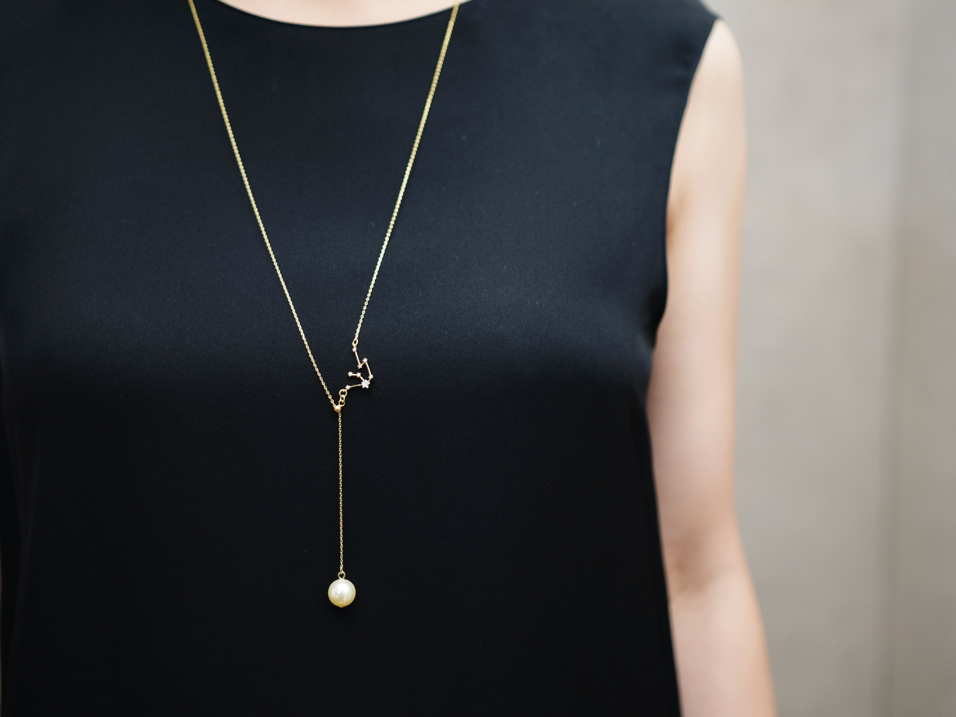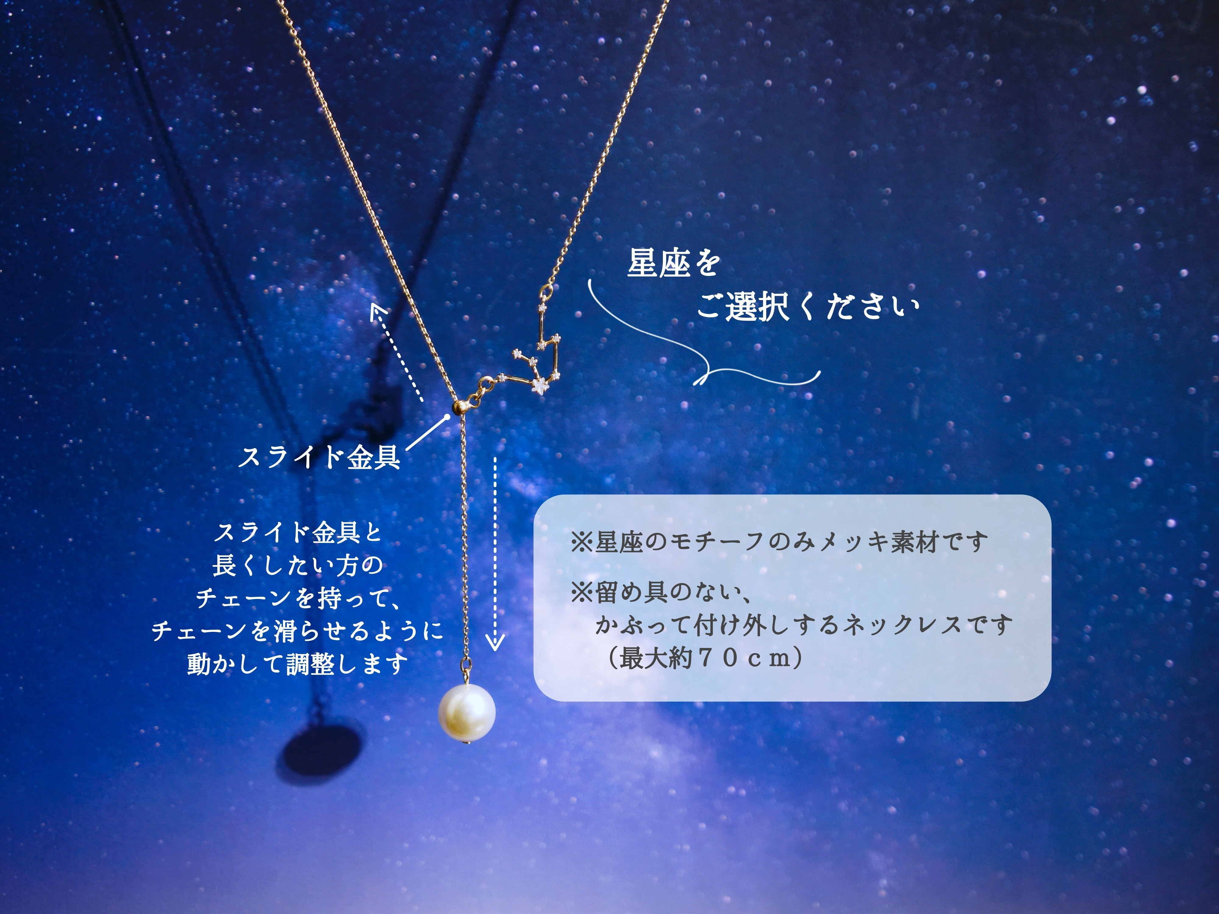 かぶるだけ【14kgf ロングネックレス】選べる星座とパール