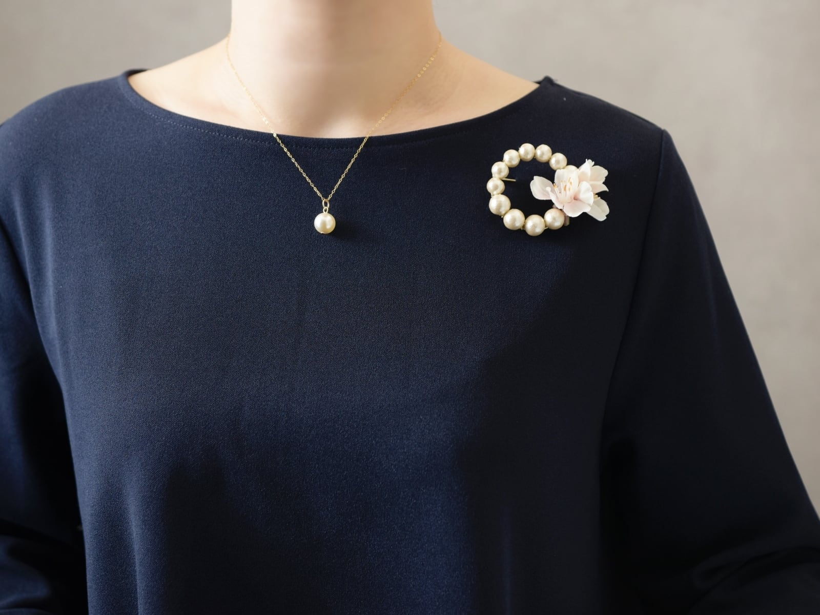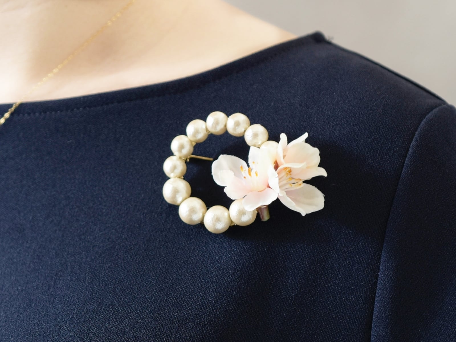 春限定【ブローチ・コサージュ/M】ソメイヨシノ(桜)とコットンパールのリース