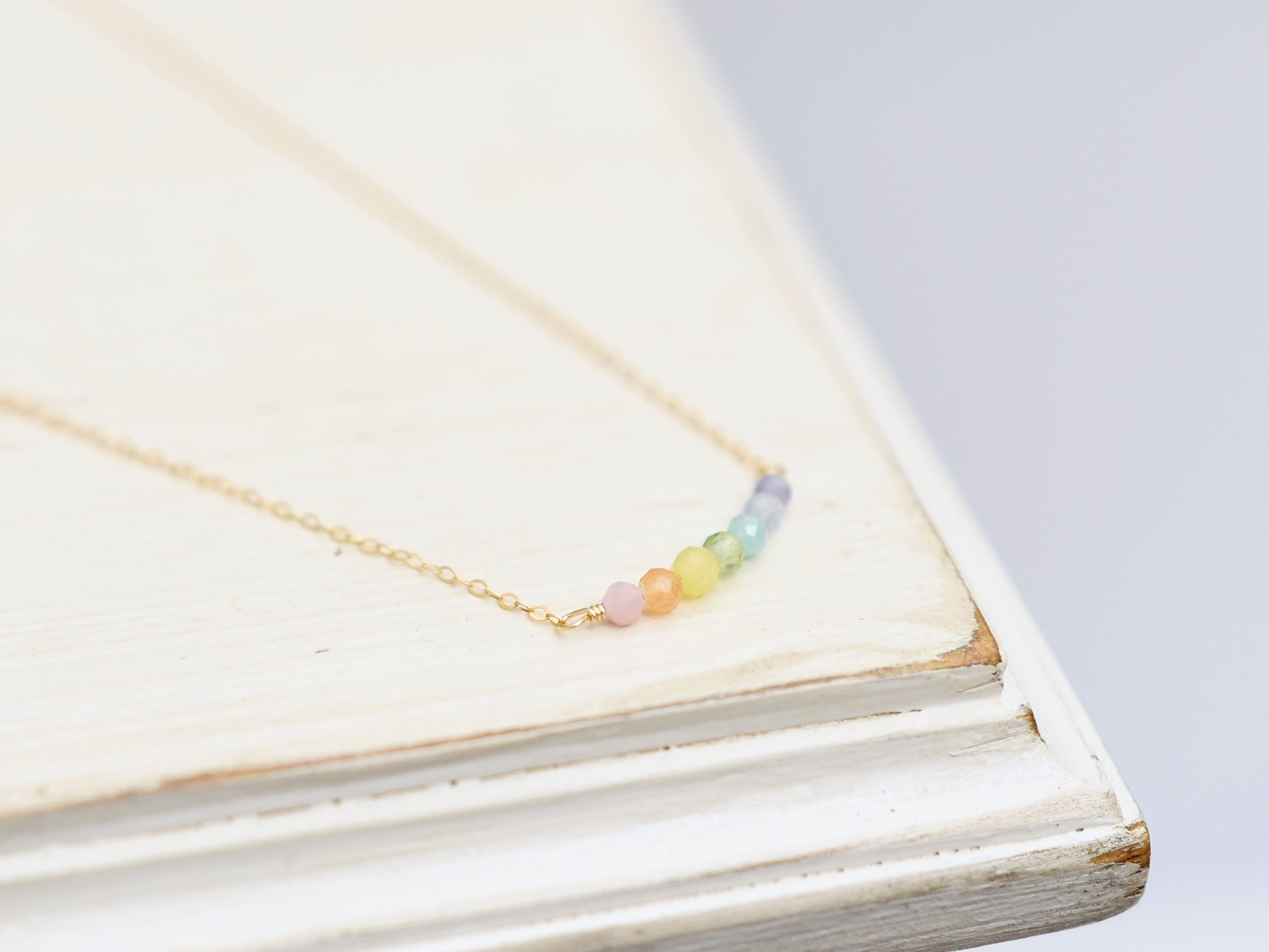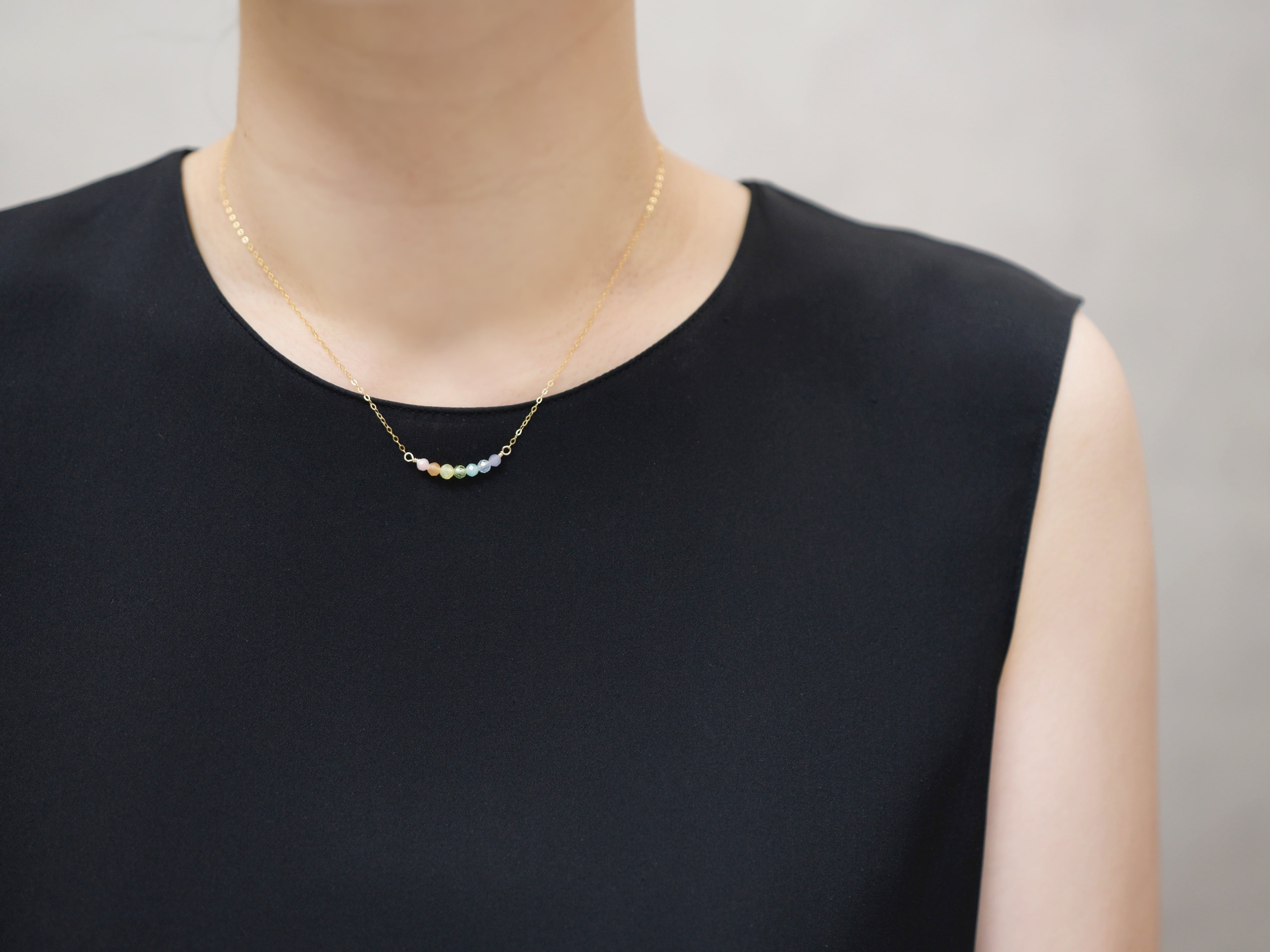 大人かわいい、マカロン色の虹がかかるネックレス。
